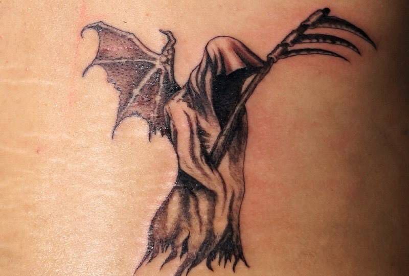 【上海马刺文身工作室】老三画皮进行中纹身图片_成品腰部耳后欧美清新鬼神原创纹身图案