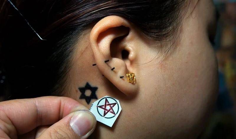 【上海马刺文身工作室】老三画皮进行中纹身图片_成品腰部耳后欧美清新鬼神原创纹身图案