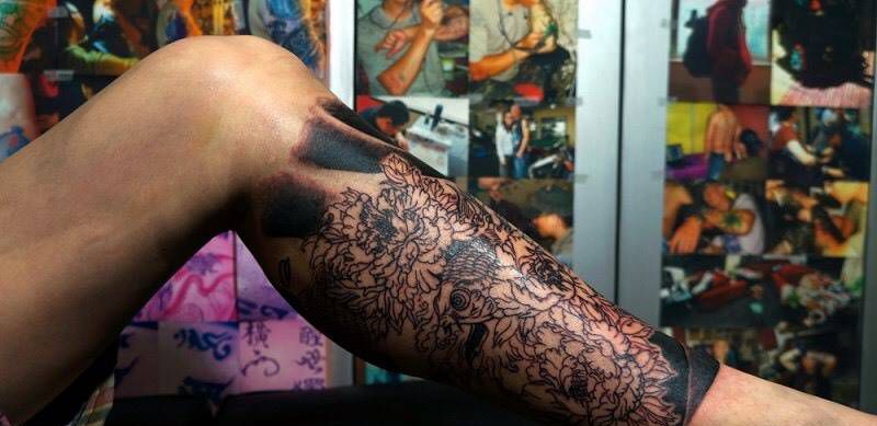 • T网红王老大花腿龙纹身图片_腿部新传统纹身图案