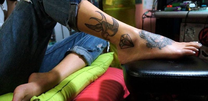 【上海马刺文身工作室】纹身图片_成品脚部腿部欧美植物动物原创完全手绘纹身图案