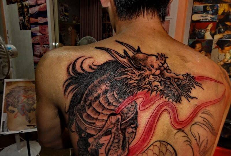 • T云龙九郎纹身图片_背部老传统云龙九郎纹身图案