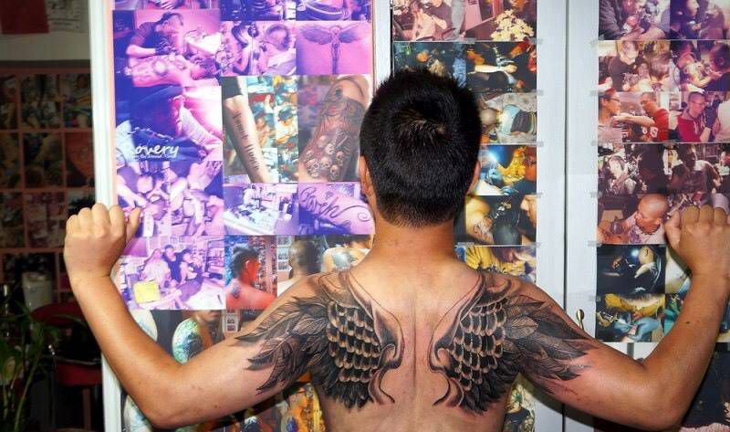 双翅【上海马刺文身工作室】纹身图片_成品肩部欧美原创纹身图案