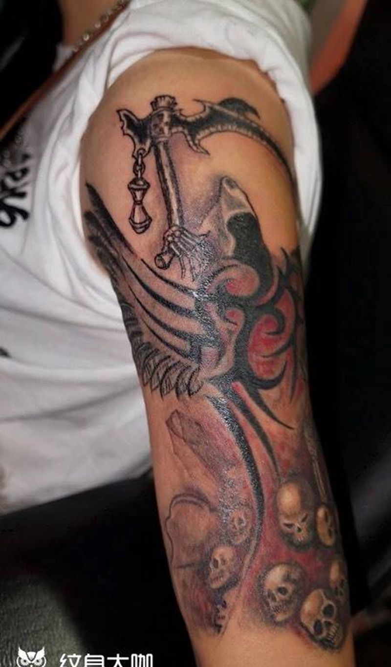 【上海马刺文身工作室】老三画皮进行中纹身图片_成品手臂欧美原创鬼神图腾纹身图案
