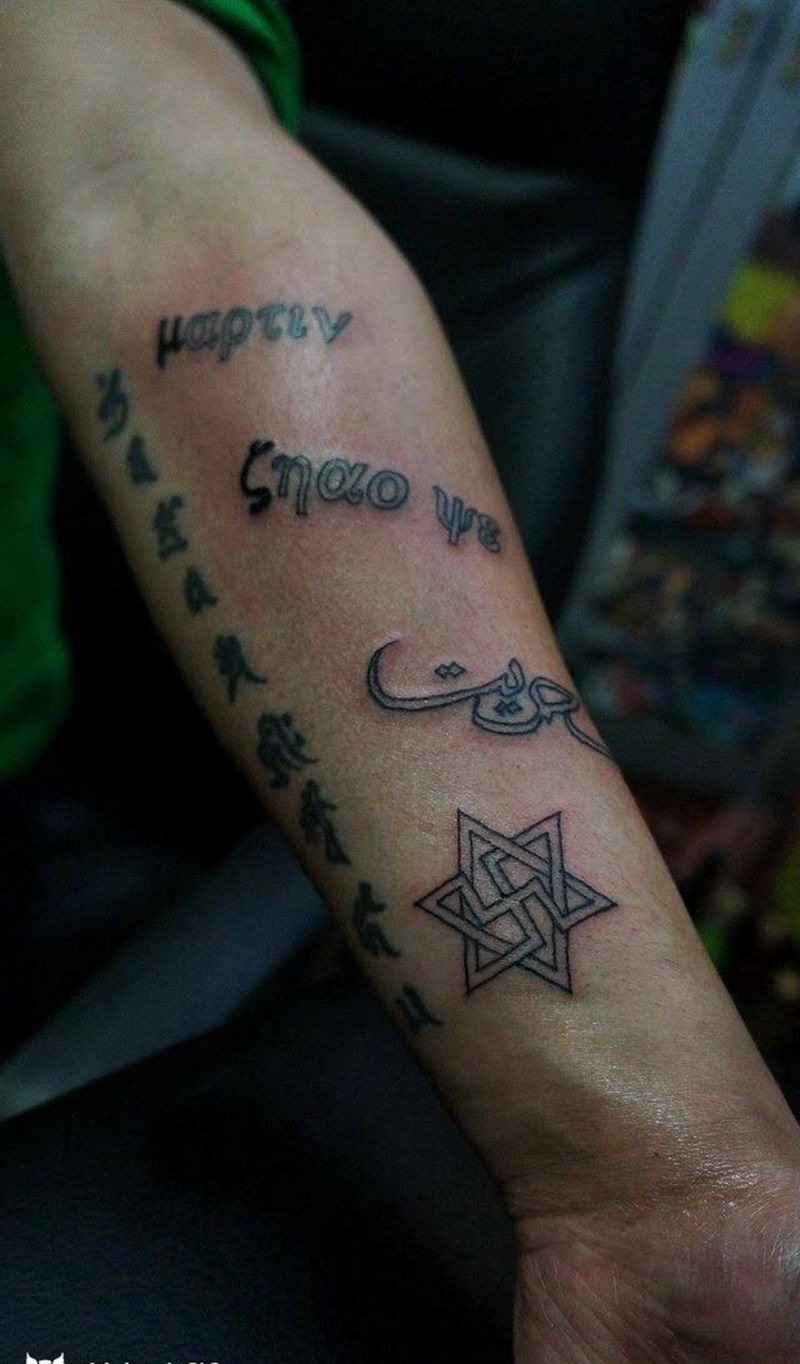 【上海马刺文身工作室】纹身图片_成品手臂背部字符静物纹身图案