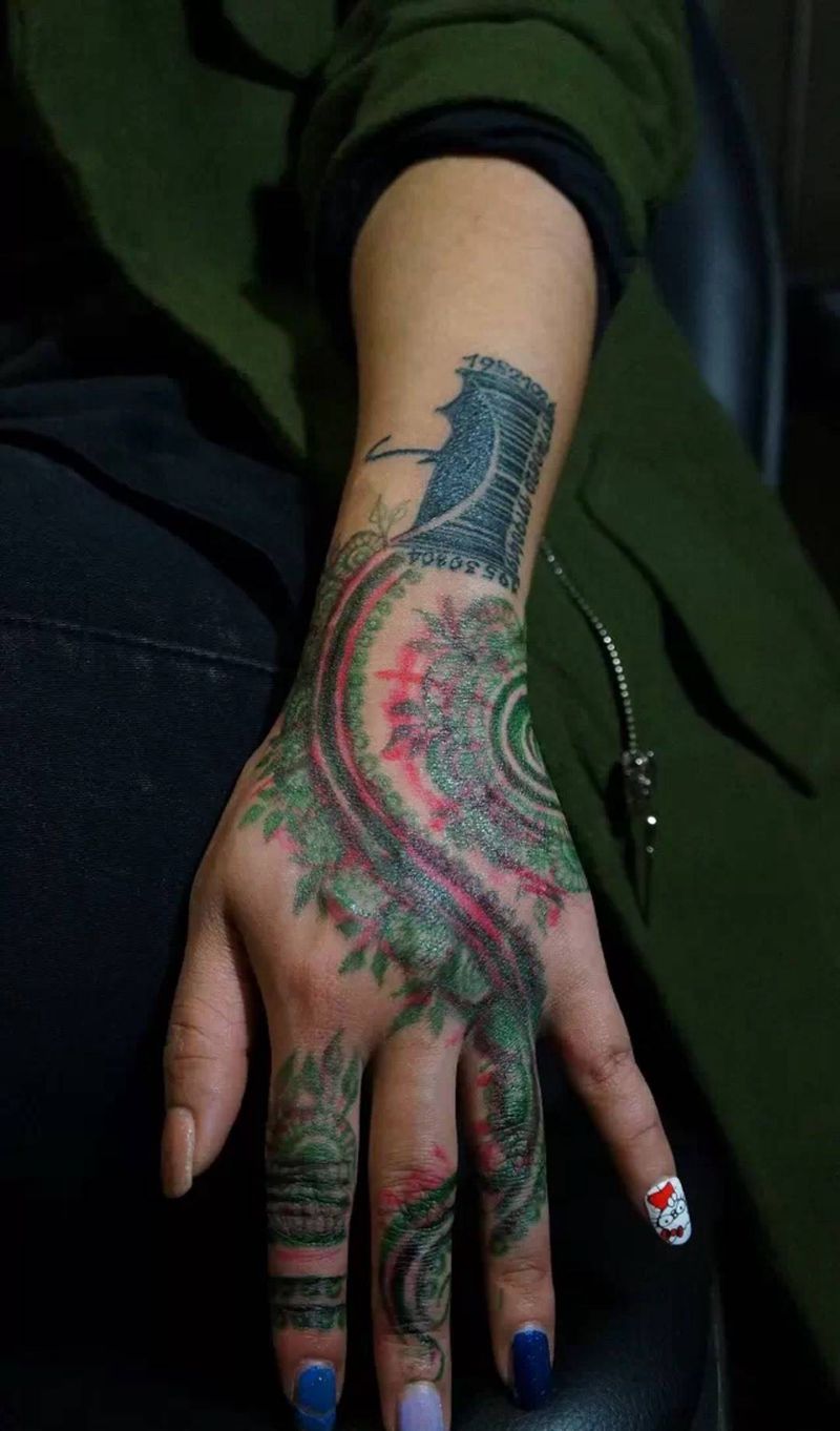【上海马刺文身工作室】纹身图片_成品手部颈部耳后欧美清新图腾完全手绘纹身图案
