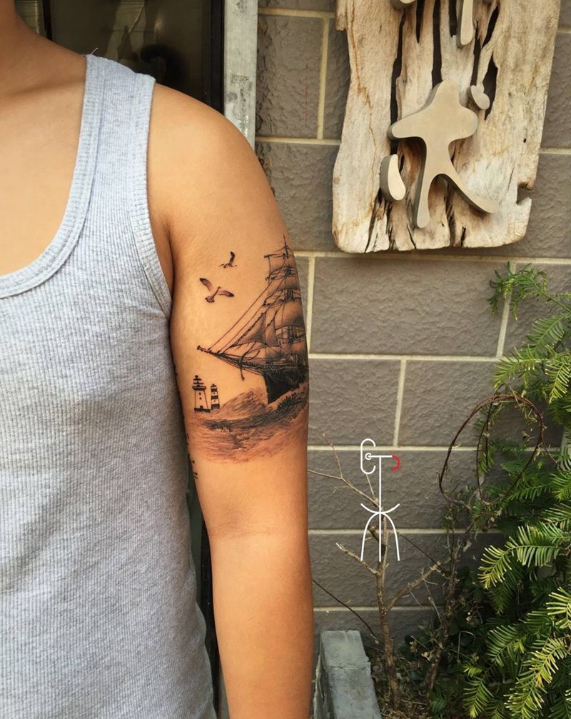 扬帆起航,纹身图片_成品手臂欧美原创纹身图案