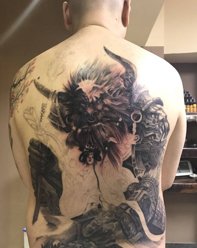 牛魔王满背纹身纹身图片_成品背部传统人物纹身图案