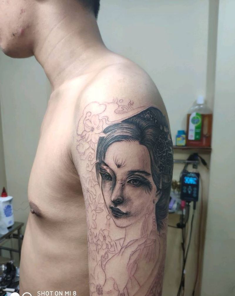 当前位置: 首页 >上海市纹身店-上海针道纹艺纹身图案>艺妓丶纹身图片_手臂纹身图案
