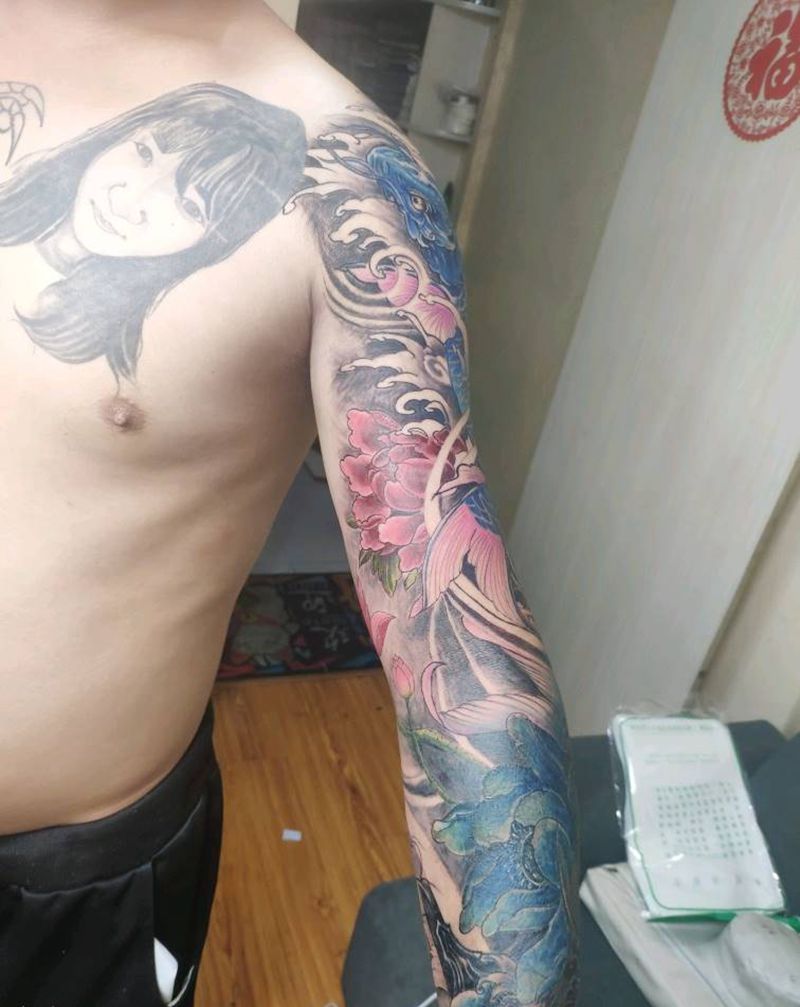 当前位置: 首页 >上海市纹身店-上海针道纹艺纹身图案>鱼(老纹身修改花臂)纹身图片_手臂纹身图案