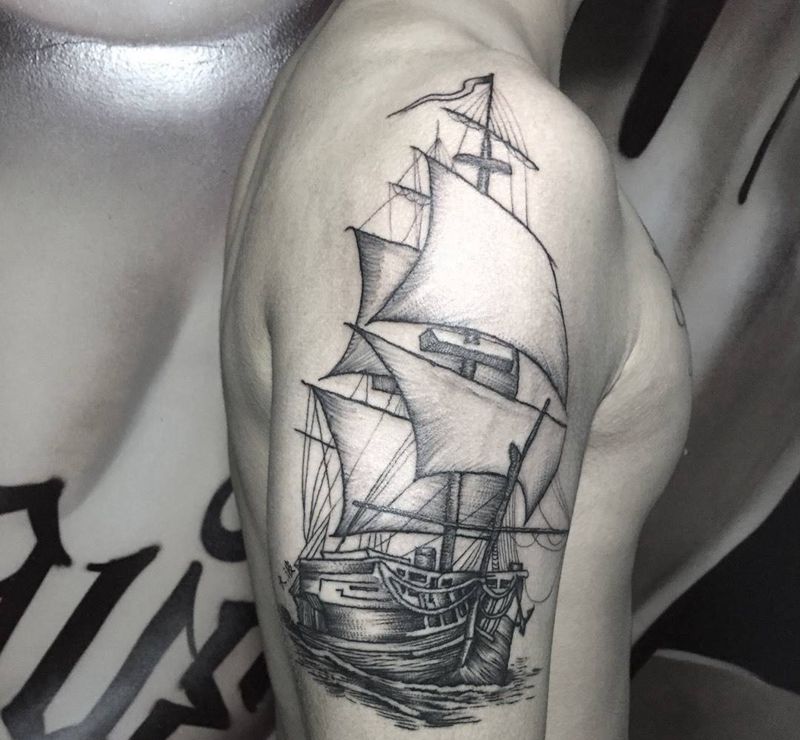 • 纹身吧推荐的披肩图腾半胛纹身图案作品展示
