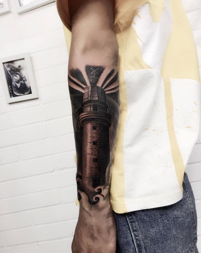 灯塔纹身图片_手臂手部新传统欧美写实纹身图案