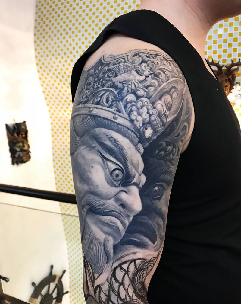 当前位置: 首页 >上海市纹身店-雕王纹身纹身图案>天王纹身图片_手臂新传统石雕写实纹身图案