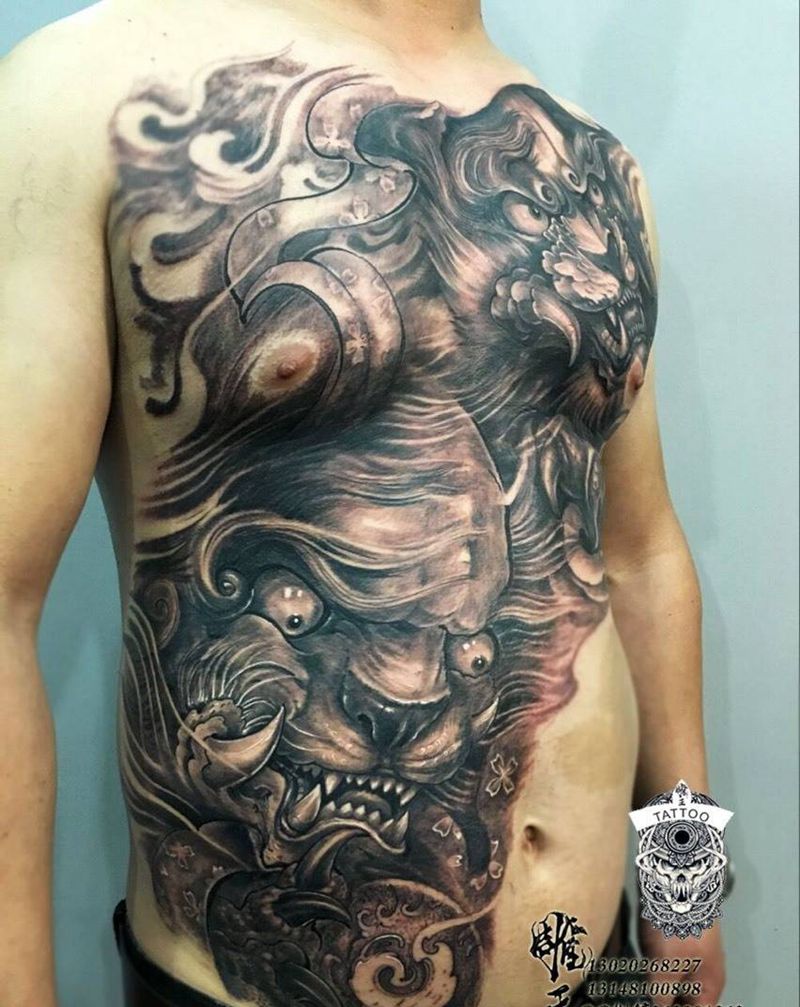 • 黑灰满背纹身图案
