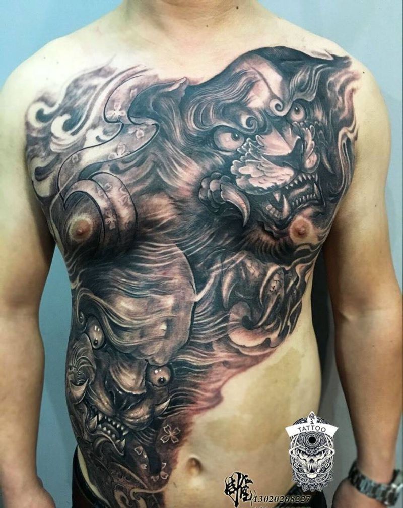 • 黑灰满背纹身图案