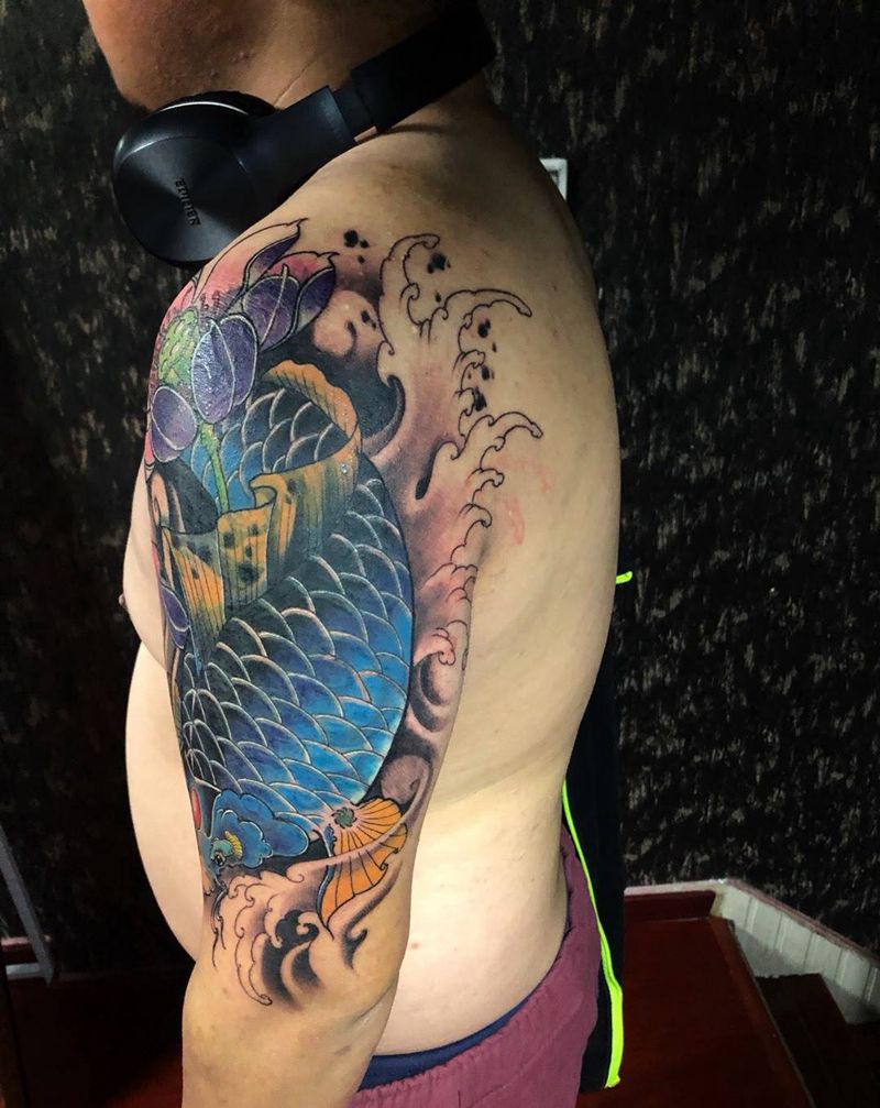 鲤鱼遮盖纹身图片_手臂新传统鲤鱼纹身图案