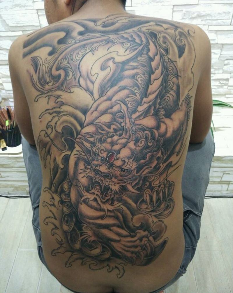 • T云龙九郎纹身图片_背部老传统云龙九郎纹身图案