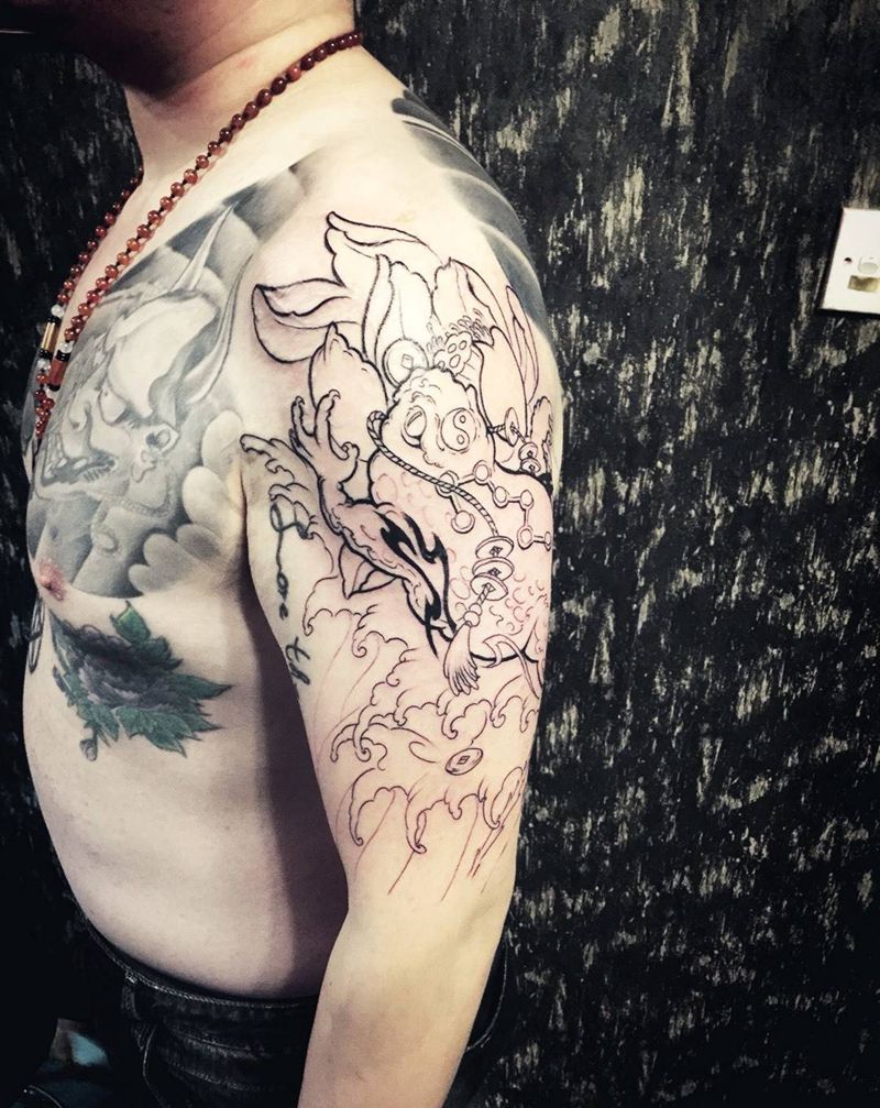 • 纹身吧推荐的披肩图腾半胛纹身图案作品展示