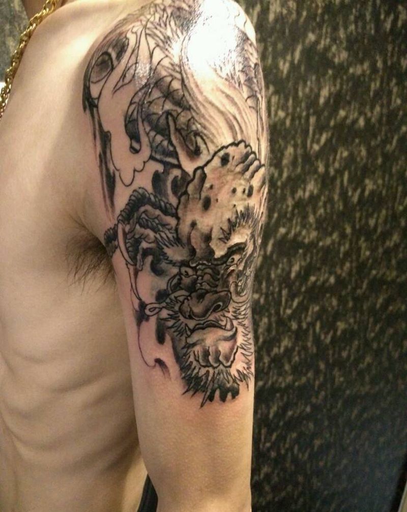• T网红王老大花腿龙纹身图片_腿部新传统纹身图案