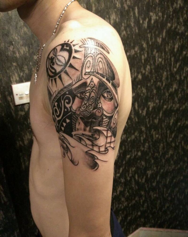 • 纹身吧推荐的披肩图腾半胛纹身图案作品展示