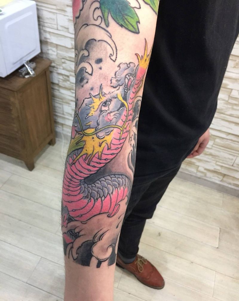 • T网红王老大花腿龙纹身图片_腿部新传统纹身图案