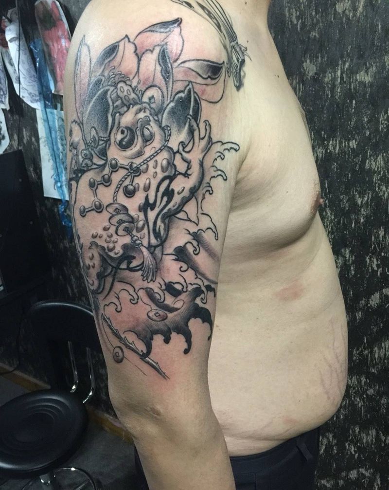 • T网红王老大花腿龙纹身图片_腿部新传统纹身图案