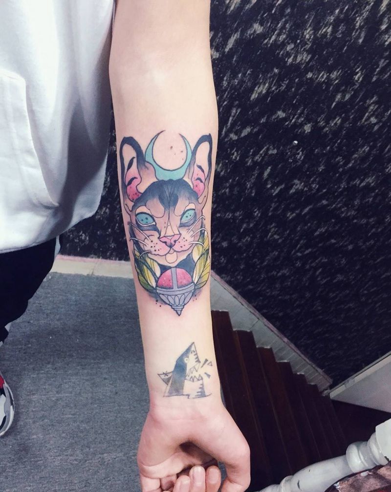 斯芬克斯猫纹身图片_手臂欧美动物纹身图案