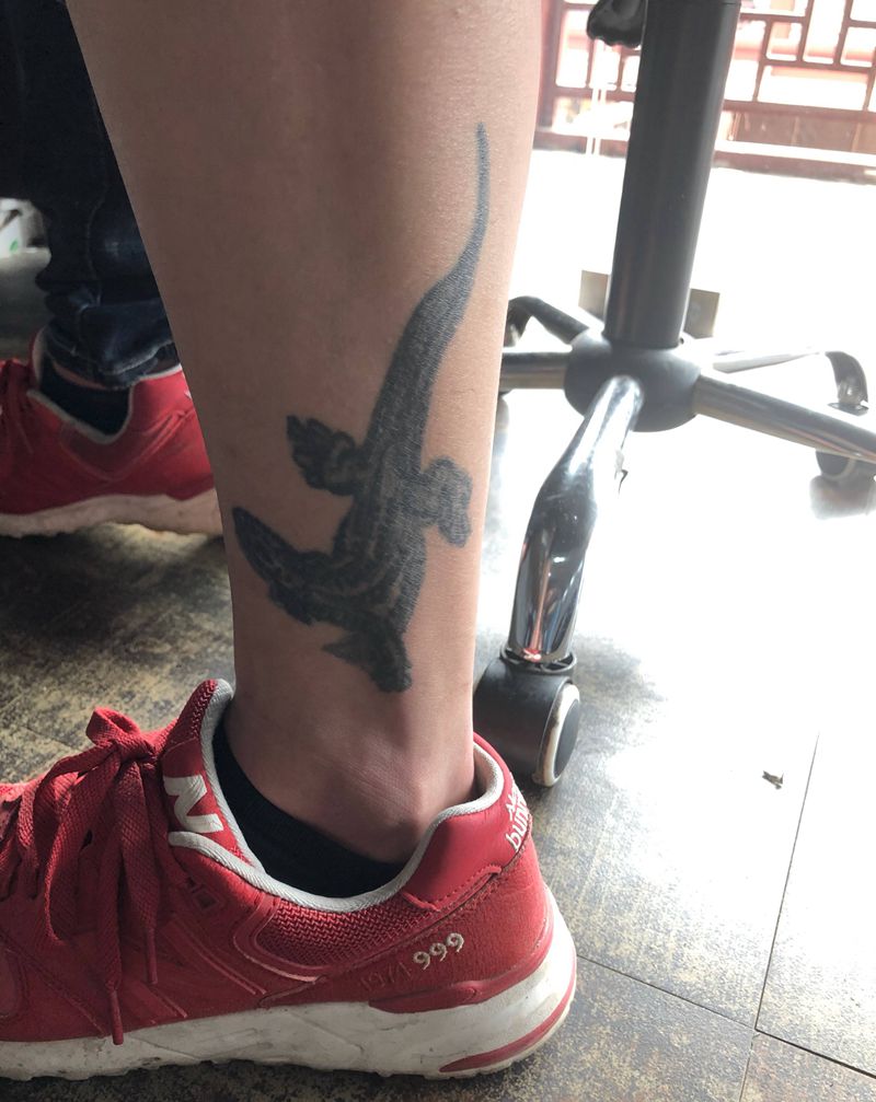 • T网红王老大花腿龙纹身图片_腿部新传统纹身图案