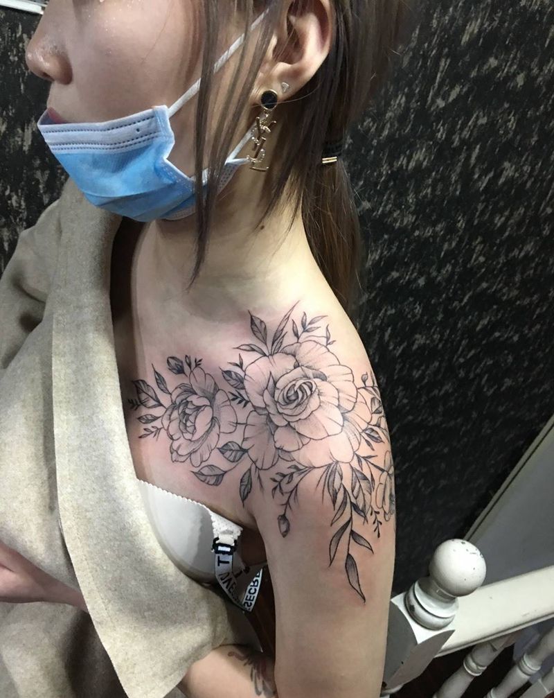 • 女性大花胸纹身_43张霸气漂亮的女性大花胸纹身图案作品
