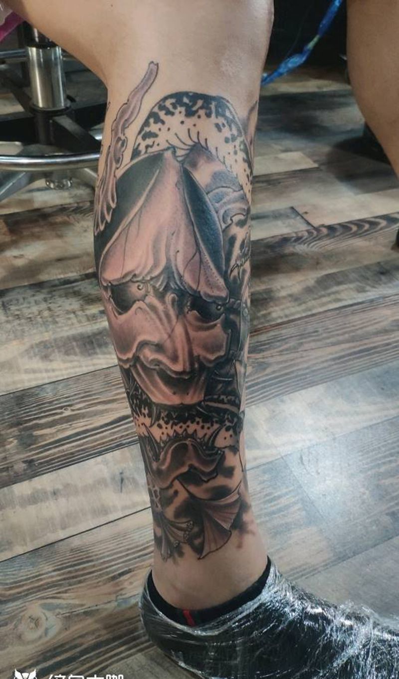 • T网红王老大花腿龙纹身图片_腿部新传统纹身图案