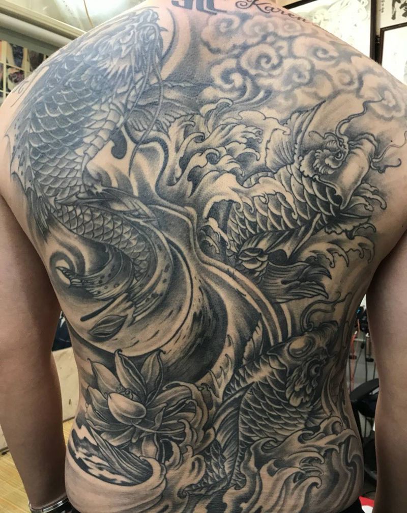 • T云龙九郎纹身图片_背部老传统云龙九郎纹身图案
