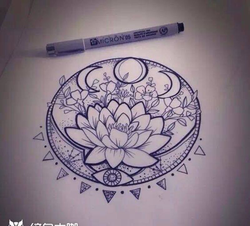 一组15张莲花纹身手