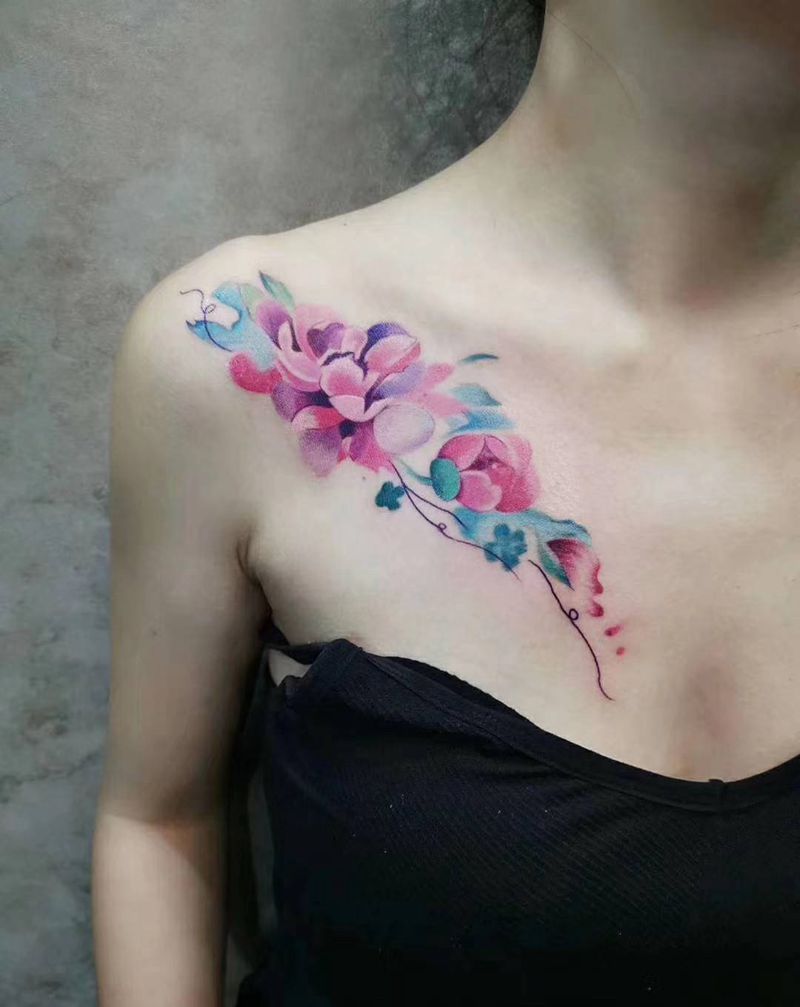 • 女性大花胸纹身_43张霸气漂亮的女性大花胸纹身图案作品