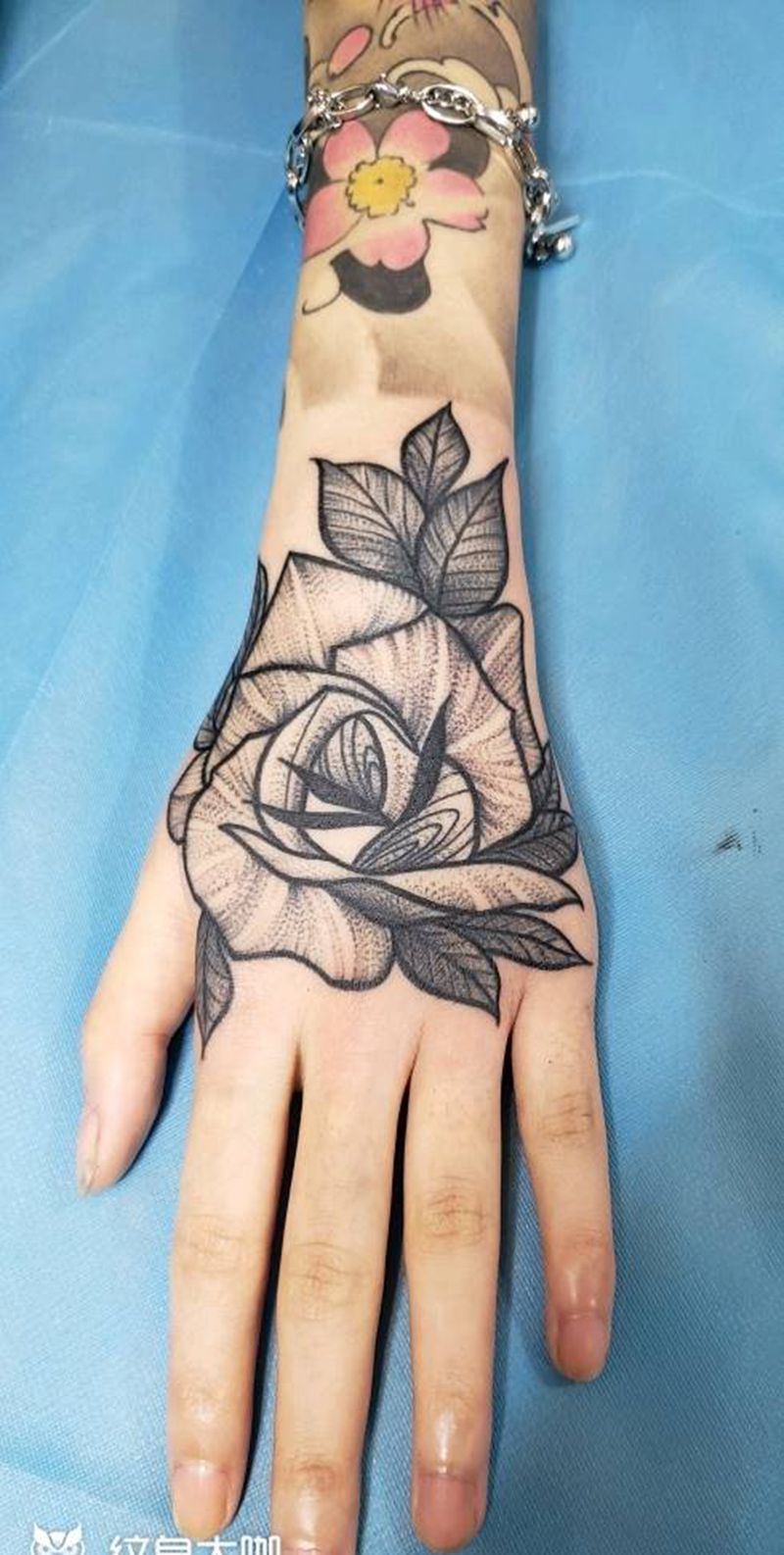 手背玫瑰纹身图片_手部点刺纹身图案