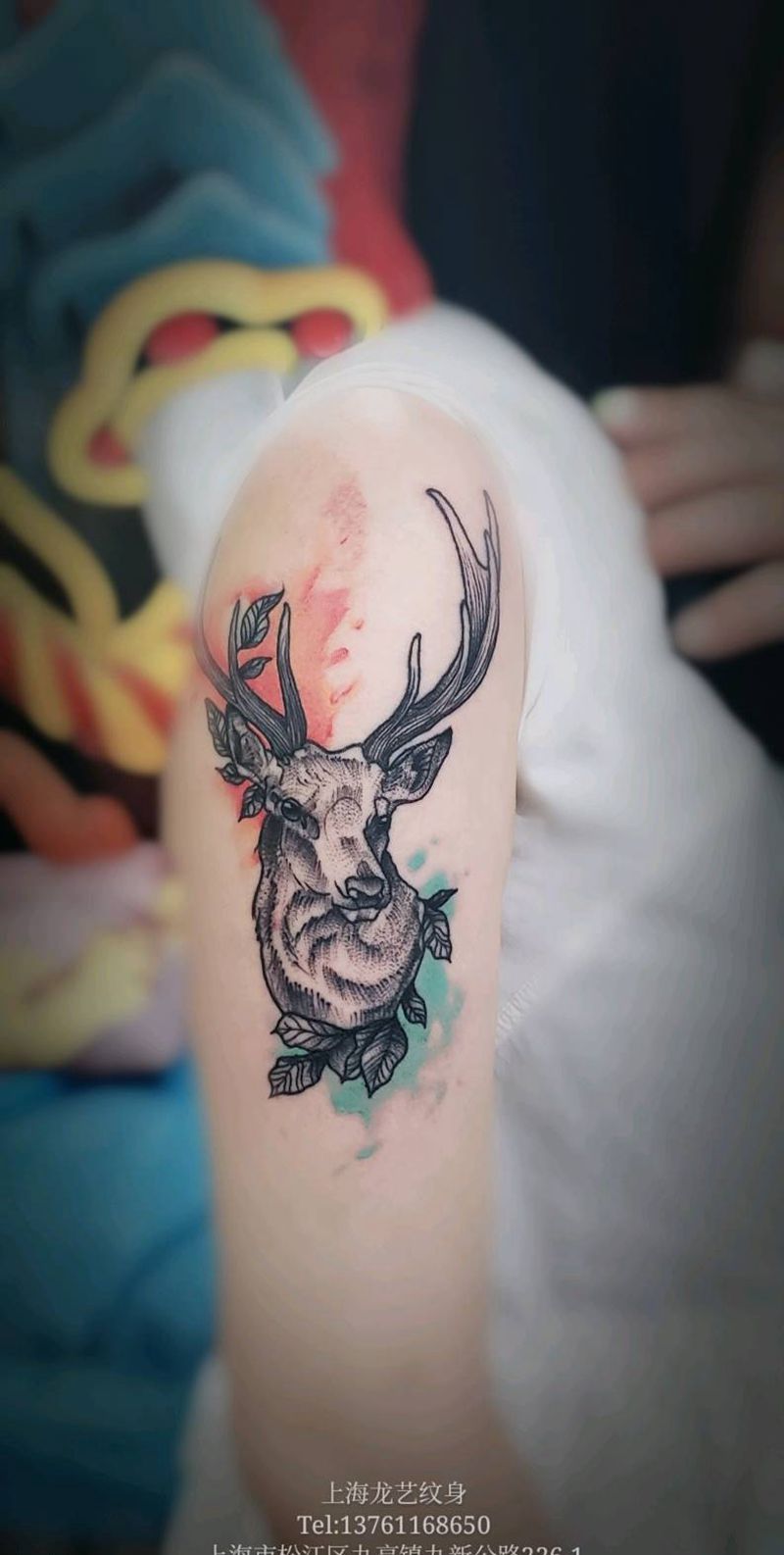 当前位置: 首页 >上海市纹身店-龙艺纹身纹身图案>鹿纹身图片_手臂鹿纹身图案