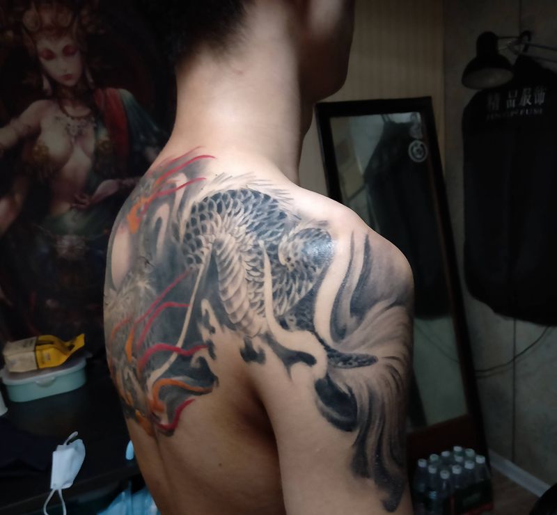 当前位置: 首页 >江苏省南京市纹身店-暮鼓刺青纹身图案>过肩龙纹身图片_胸部背部新传统纹身图案