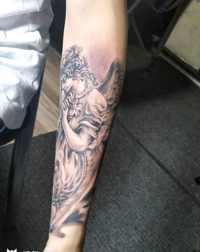 包小臂天使与玫瑰纹身图片_手臂欧美写实纹身图案