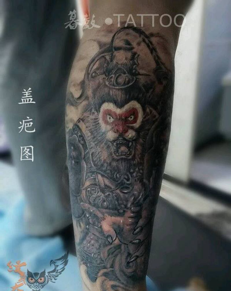 当前位置: 首页 >江苏省南京市纹身店-暮鼓刺青纹身图案>包腿大圣(盖疤)纹身图片_腿部传统人物鬼神纹身图案
