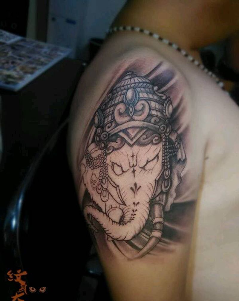 大臂~象神纹身图片_手臂传统鬼神宗教纹身图案