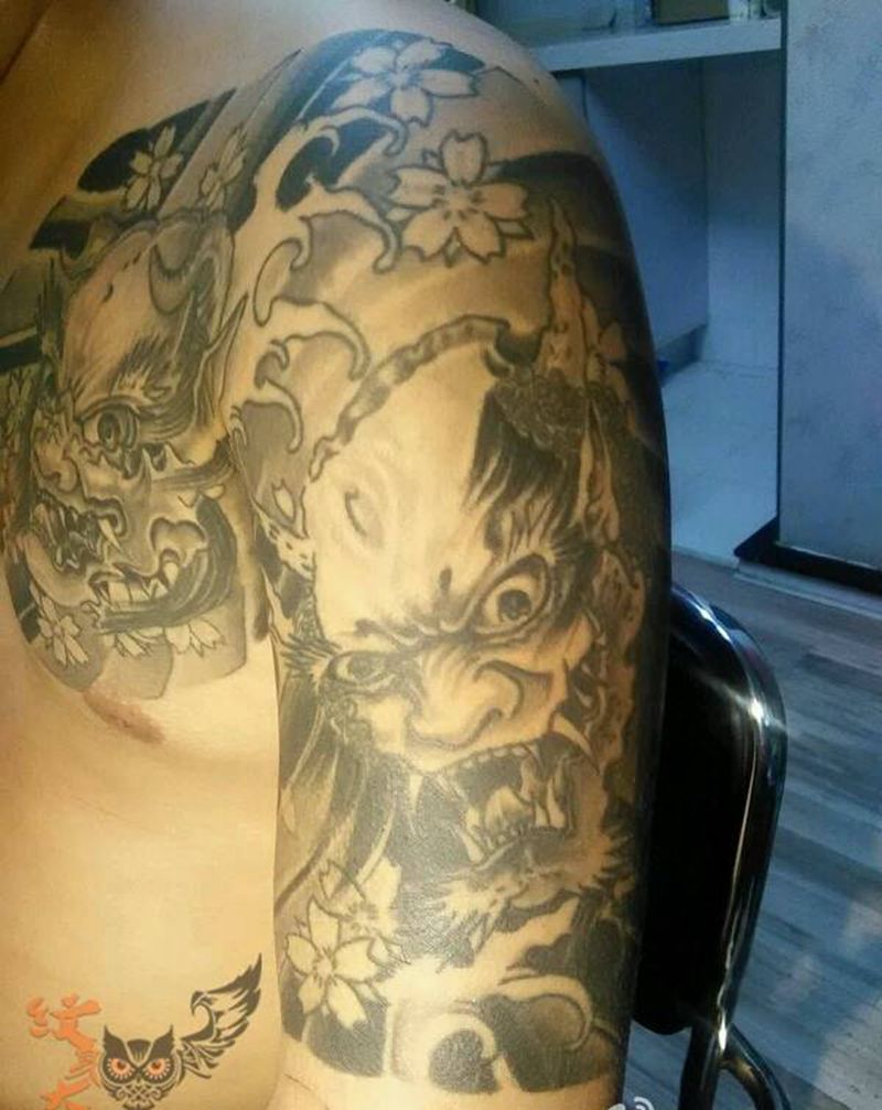 半甲↘还能重逢~三年前图~你好纹身图片_胸部手臂传统鬼神纹身图案