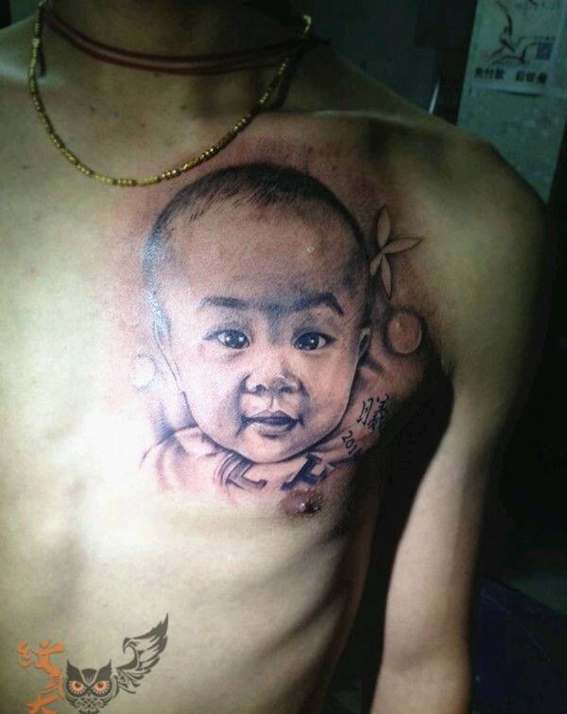 有爱巴比小萌娃纹身图片_胸部肖像人物原创纹身图案