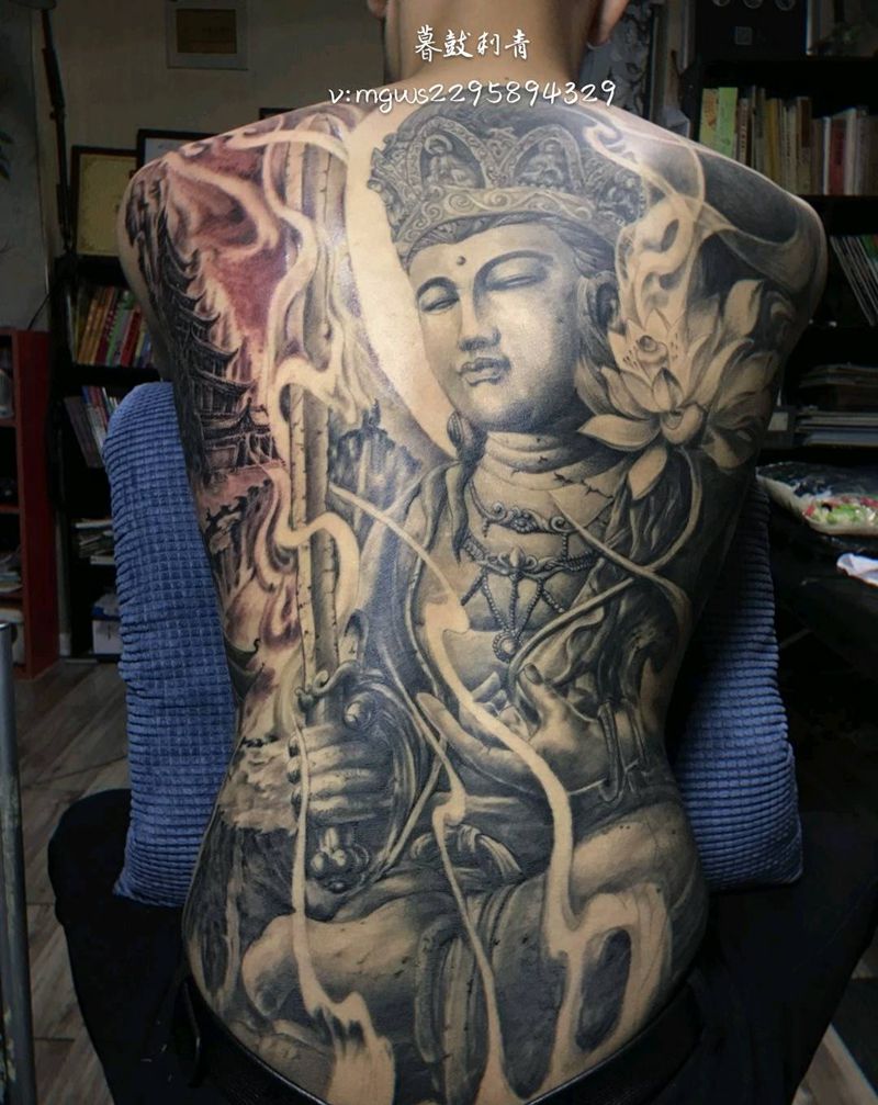遮改旧线条(虚空藏)纹身图片_背部欧美写实纹身图案