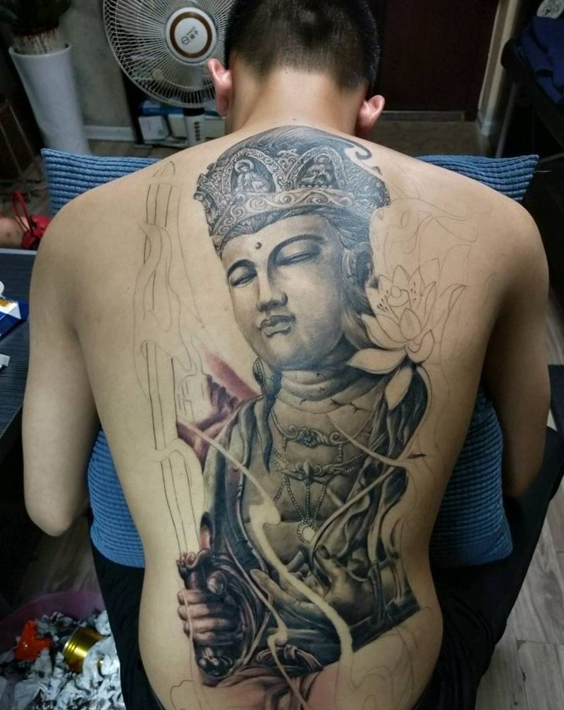 遮改旧线条(虚空藏)纹身图片_背部欧美写实纹身图案