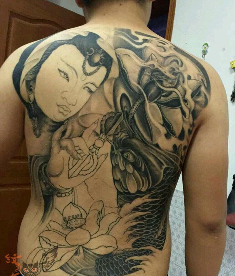 黑灰满背纹身图案