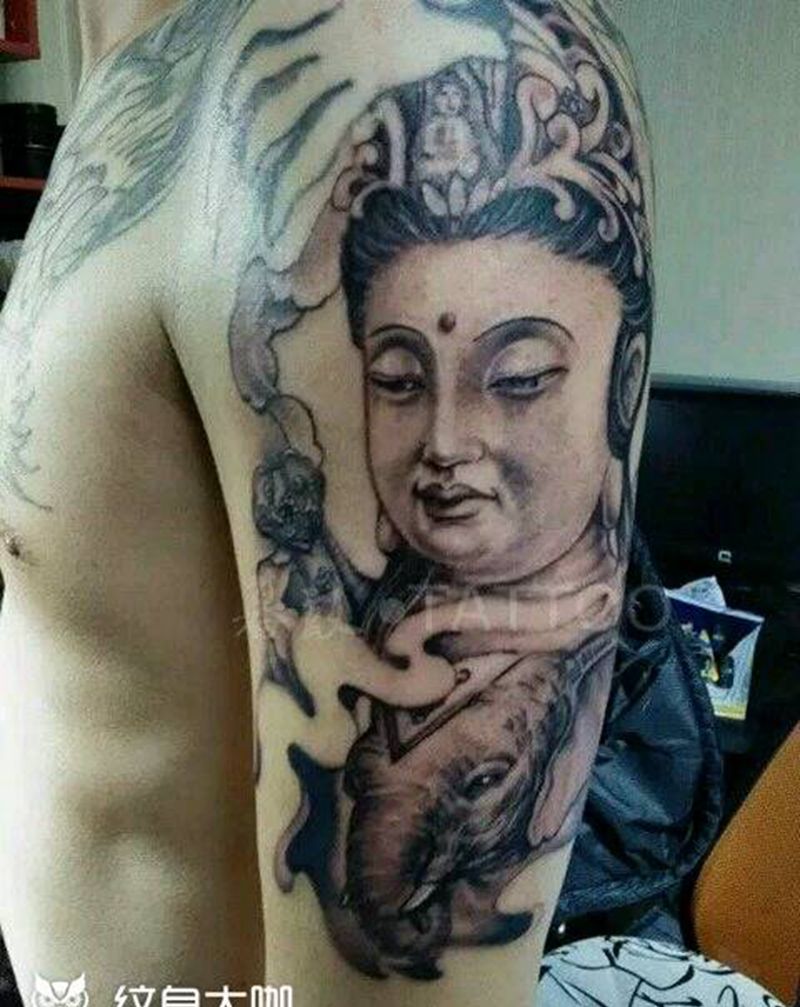 普贤菩萨过程纹身图片_手臂传统人物宗教成品纹身图案