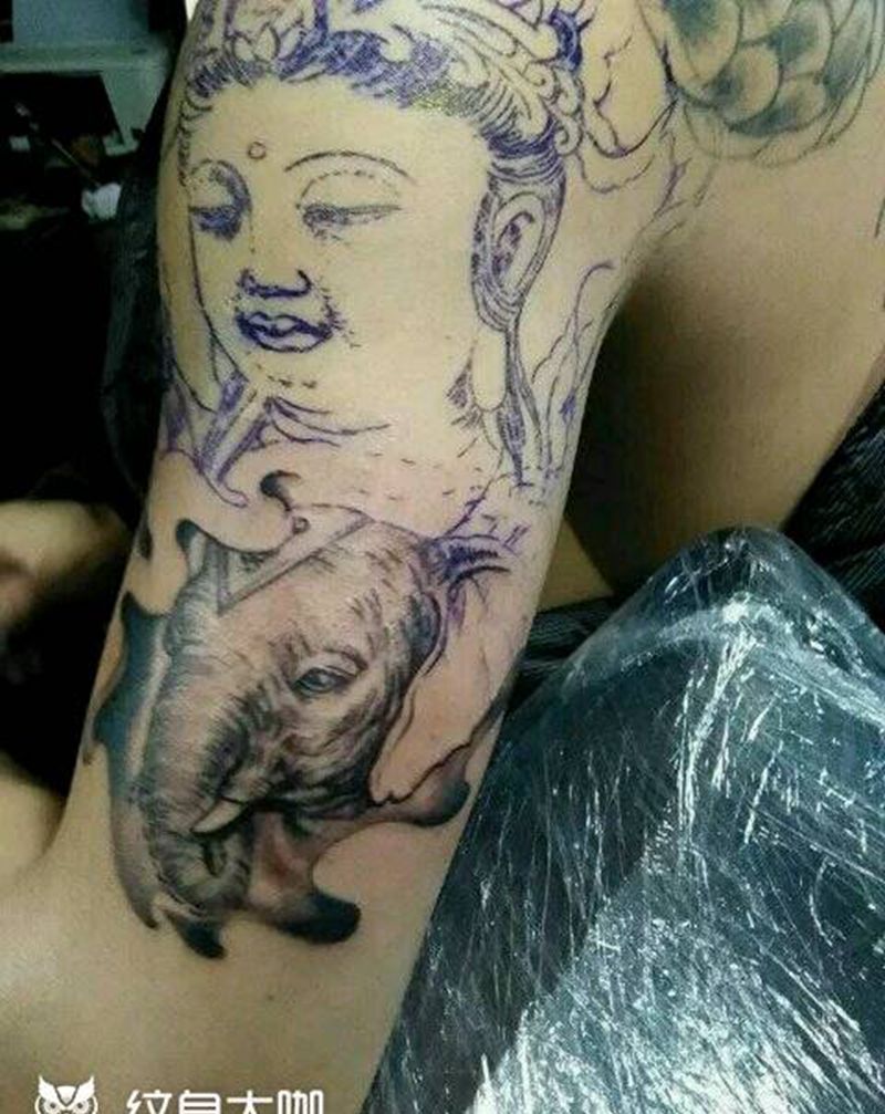 普贤菩萨过程纹身图片_手臂传统人物宗教成品纹身图案