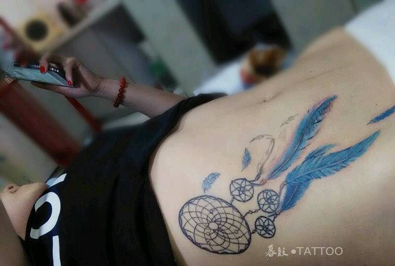 美女的捕梦网(盖疤痕)纹身图片_腰部清新原创成品纹身图案