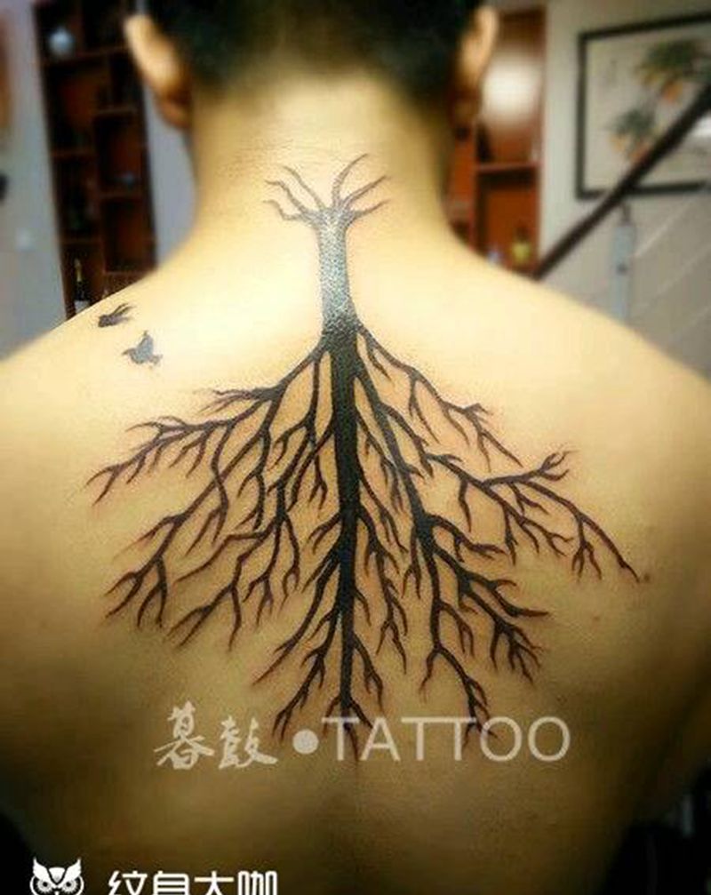 倒树~不是倒数纹身图片_背部清新植物原创成品纹身图案