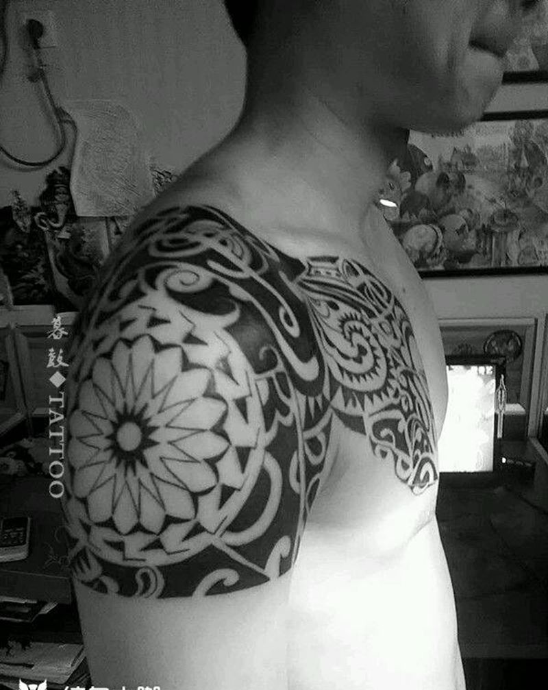 • 纹身吧推荐的披肩图腾半胛纹身图案作品展示
