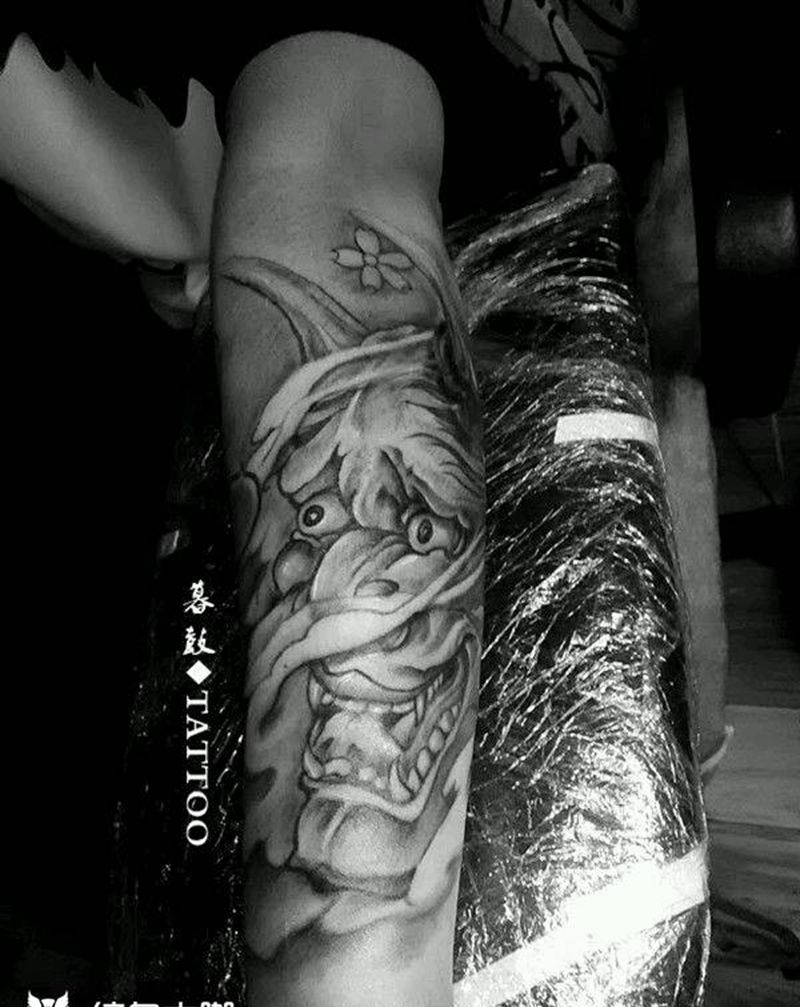 小臂般若纹身图片_手臂传统鬼神成品纹身图案