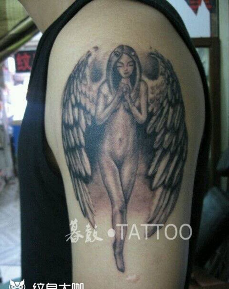 当前位置: 首页 >江苏省南京市纹身店-暮鼓刺青纹身图案>天使纹身图片_手臂欧美写实人物成品纹身图案